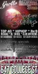 SATURDAY DECEMBER 3rdsignature SaTuRdAyS at GROTTO on COLLEGE STREETGuys 23+NO COVER before MIDNIGHTStyle Code in Effect __________________BRAND NEW HIPHOPOL' SKOOL REGGAETOP 40 CLUB HITSDJ BAM BAM DJ OXXX DJ KING COBRA__________________BOTTLE SERVICE IS STRONGLY RECOMMENDED$125 DOMESTIC BOTTLES$150 PREMIUM BOTTLES
